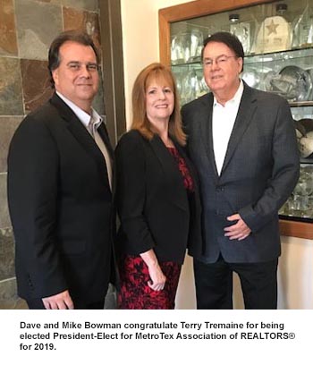 Terry Tremaine has been elected President-Elect for MetroTex Association of REALTORS® for 2019. With her experience, dedication and loyalty, she will be an excellent President of the MetroTex Association of REALTORS in 2020.